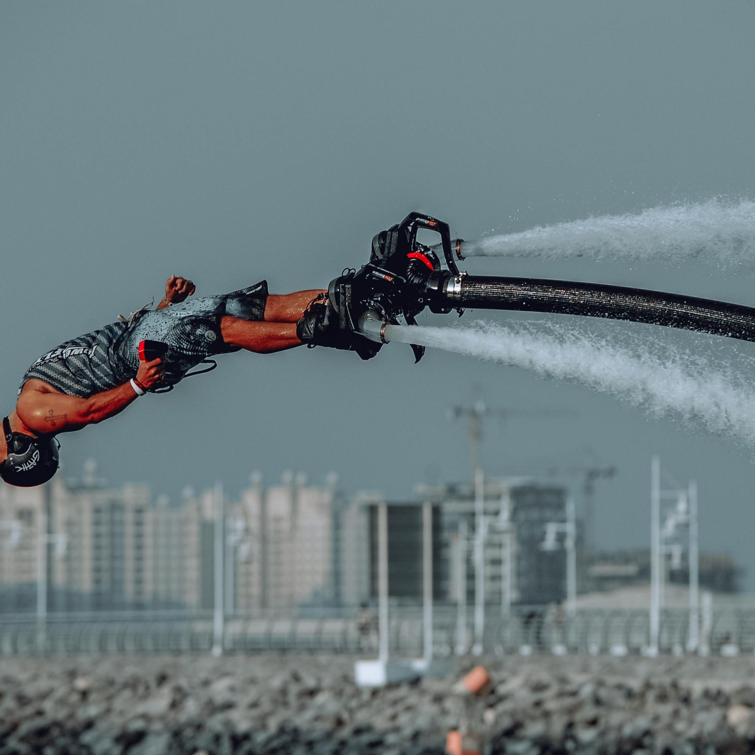 Fly over the ocean for at least 10, 20 minutes or multiple times and experience the incredible sensation of being lifted above the water thanks to the force of the jets, like a real superhero.